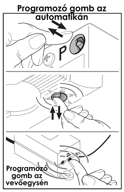Figyelem! A távirányító feltanítása esetén a kapu működésbe léphet! Az alábbi leírás tájékoztató jellegű A pontos betanítási útmutatót az automatika gépkönyvében találja! A felprogramozást a leírás átolvasásával kezdje, ellenkező esetben akár az összes távirányítót törölheti a rendszerből. A programozás előtt győződjön meg arról, hogy a kapu útjában és közelében sem személy sem akadály nincs!